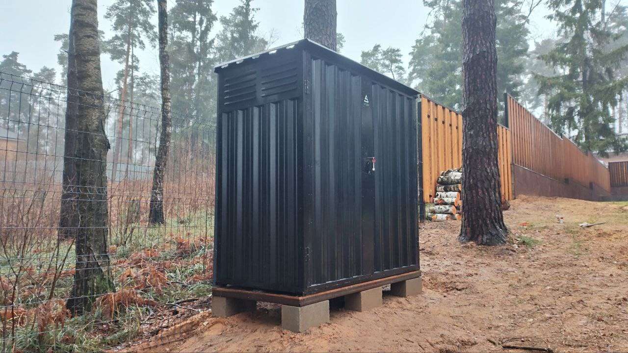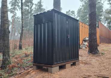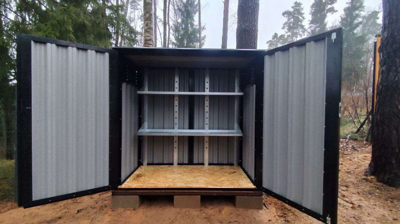 Нами была изготовлена стандартная конструкция дровницы размером 1,03 х 2,22 х 2,1 м в классическом черном цвете RAL 9005.