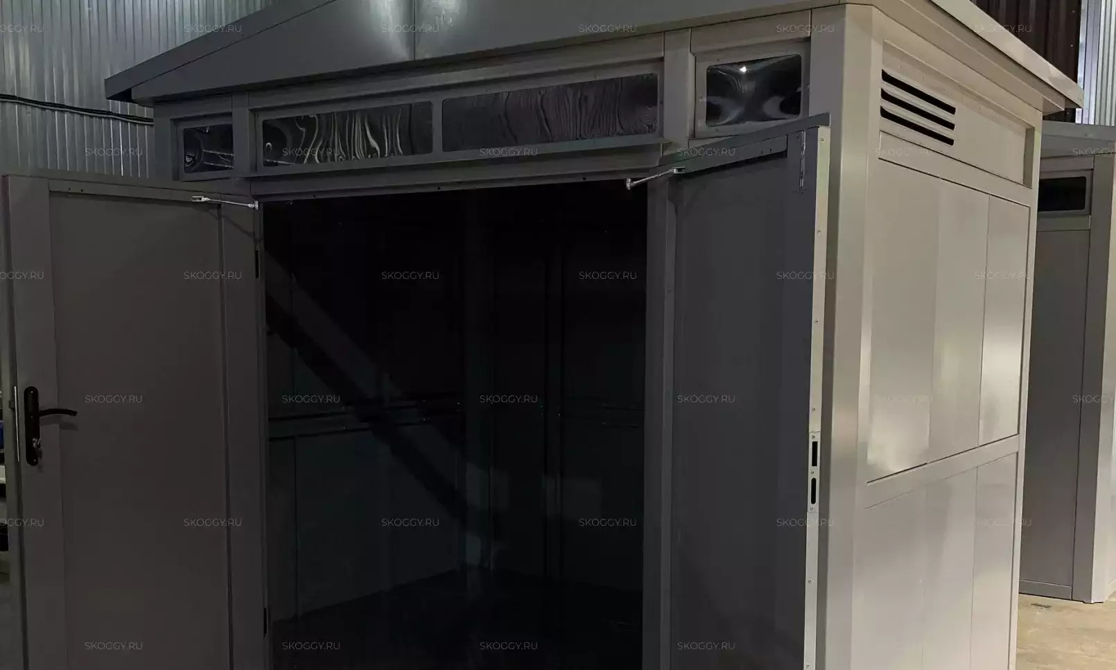 Это оптимальный вариант для качественного хранения - двускатная крыша надежно защищает от сильного дождя, что позволяет сохранить дрова в надлежащем состоянии. Несмотря на компактный размер, блок-контейнер выдерживает нагрузку до 2,5 тонн.