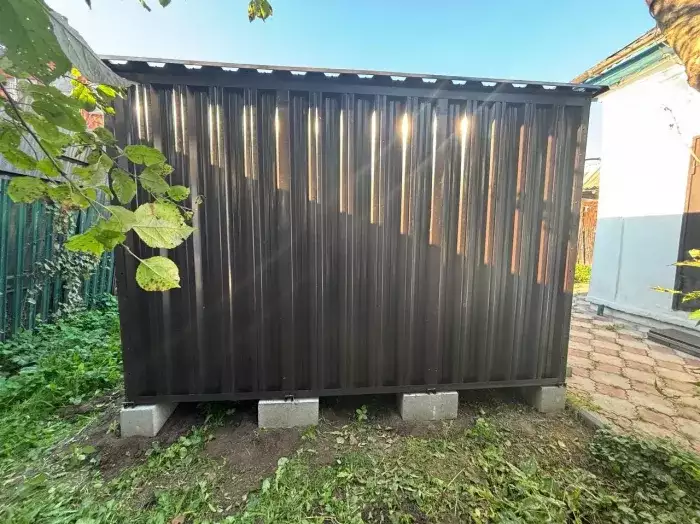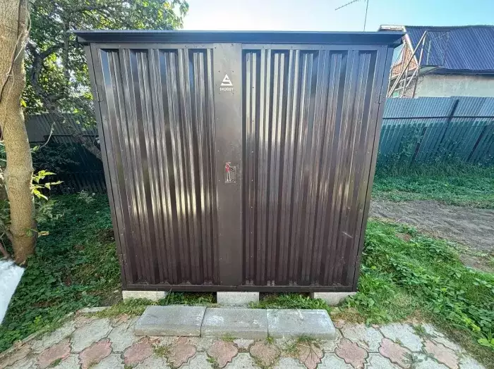 Нами были изготовлены две конструкции дровницы размером 1,03 х 2,22 х 2,1 м в сигнальном сером цвете RAL 7004. Такая расцветка была выбрана, чтобы постройки гармонировали по цвету с жилым домом на участке.