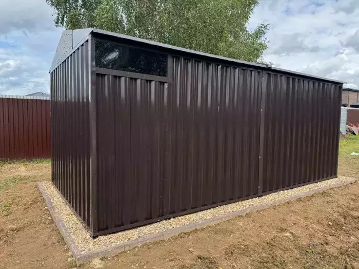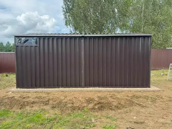 Проект: 5-метровый хозблок для хранения хозяйственных принадлежностей в цинковом цвете.