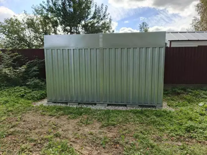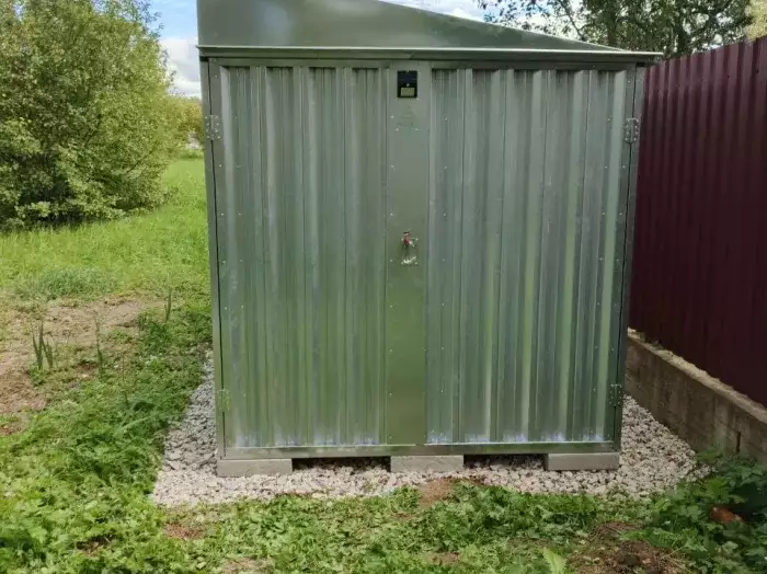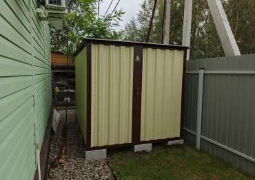 Доставляли хозблок на участок заказчицы манипулятором в разобранном виде. Нашими специалистами предоставлялись услуги по установке бетонных блоков и сборке изделия.