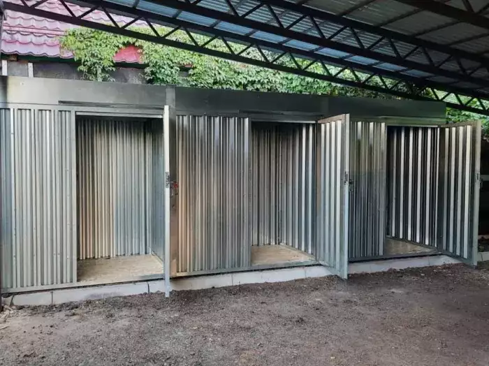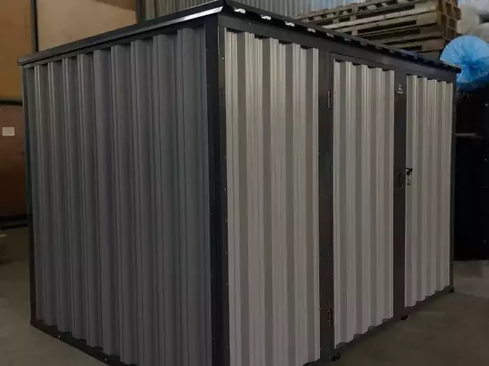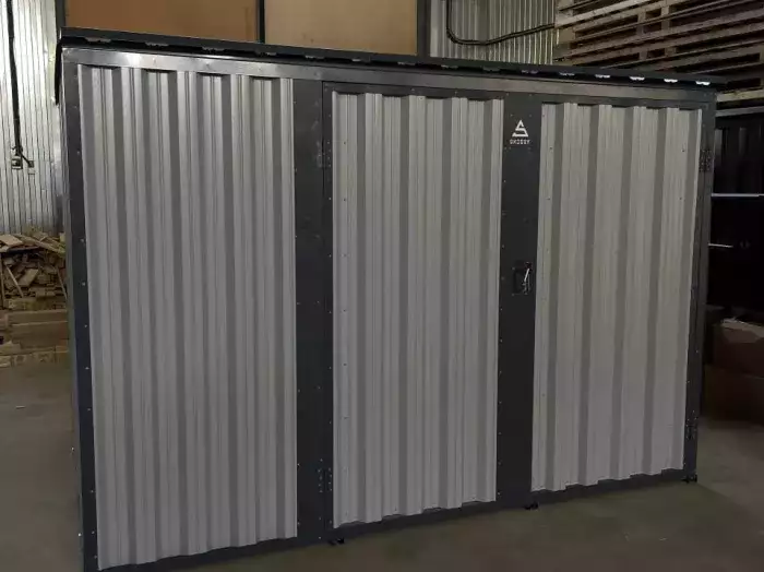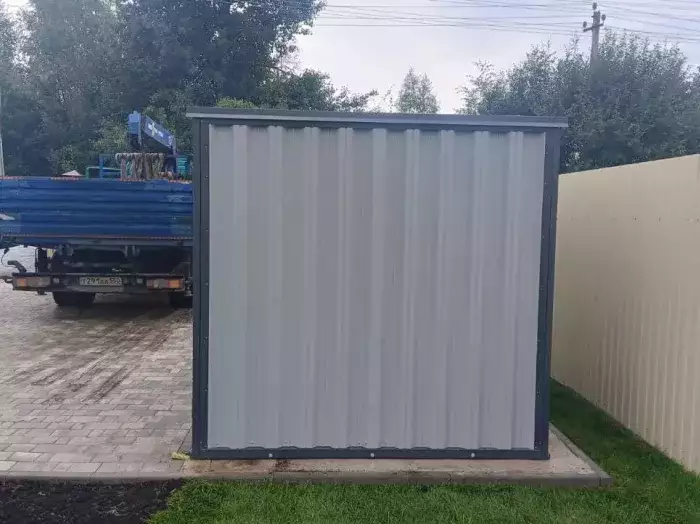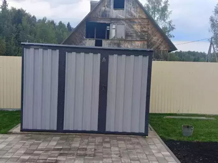 Мы остановились на варианте длиной в 5 метров. Для удобства использования выбрали рольставни и окрасили хозблок в приятный шоколадный цвет RAL 8017. Сборку произвели в течение двух часов и, конечно же, убрали за собой.