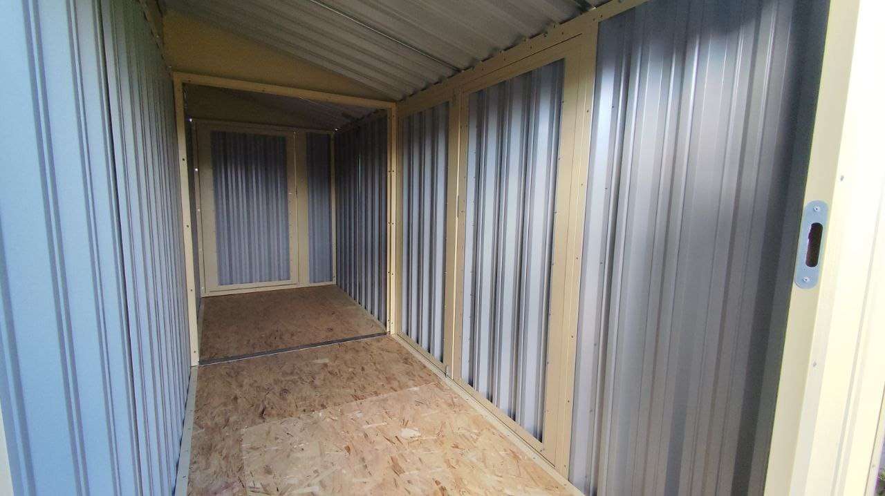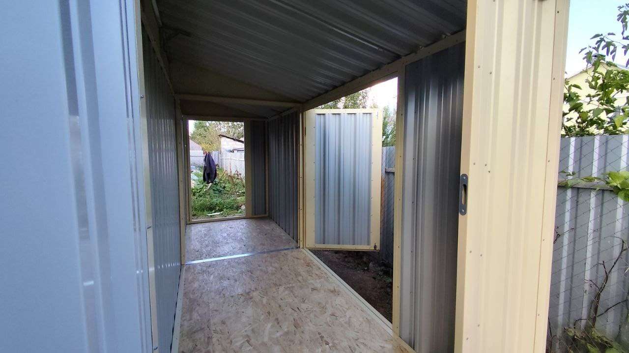 Проект: хозблок 5 х 1,6 х 2,45 м для хранения садовой техники и инвентаря в цвете "слоновая кость".