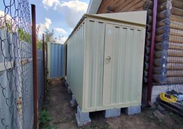 Доставляли хозблок на участок заказчика манипулятором в разобранном виде. Нашими специалистами предоставлялись услуги по установке бетонных блоков и сборке изделия.