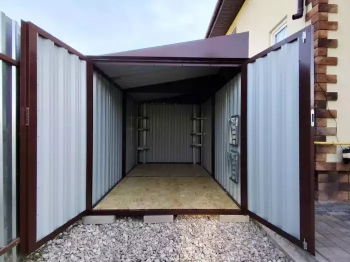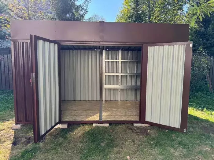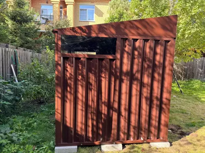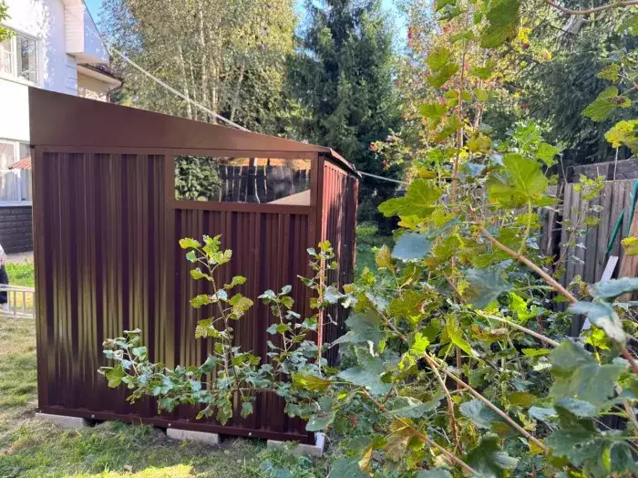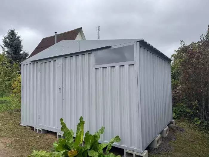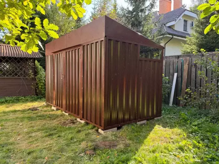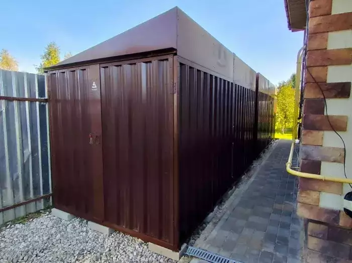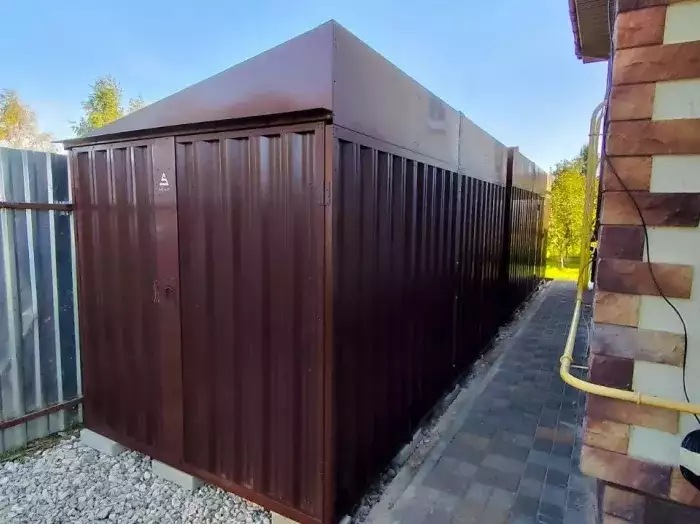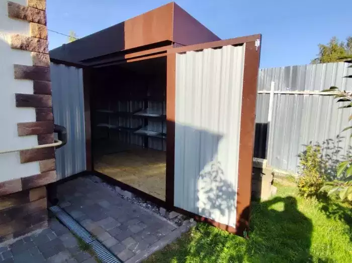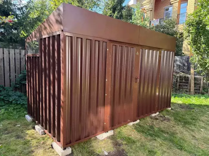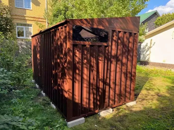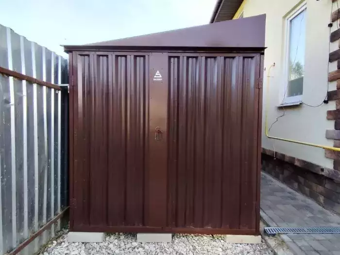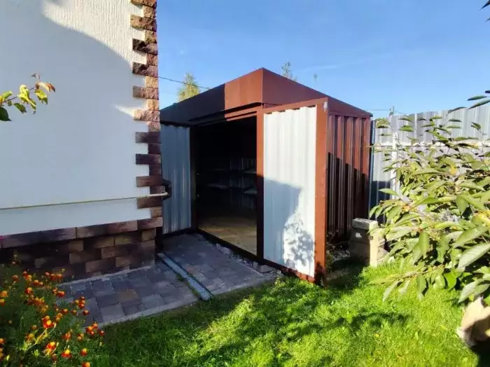 Заказчику этого проекта на участок был необходим компактный хозблок для хранения садового инвентаря и гриль-мангала. Нами были предложены различные варианты, и идеальным вариантом стала наша стандартная дровница.